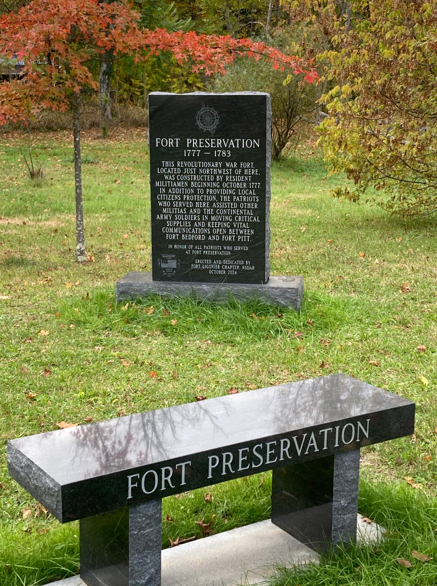 Funding for the Fort Preservation Commemorative Granite Marker was provided by LVE/Craig Family Fund, Ligonier Valley Endowment/Marvin & Mary Louise Gantz Fund, LVE/Pam, Bill and Todd Stablein Family Fund, Ligonier Valley Endowment/Martha Lou Schove Fund, James and Rebecca Mauch Fund, Ligonier Valley Endowment/John S. and Kathryn G. Tosh Fund and the Ligonier Valley Endowment of The Pittsburgh Foundation.