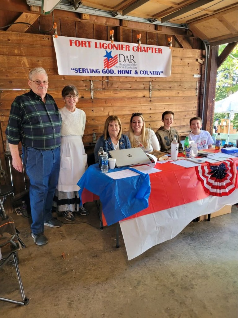 Fort Ligonier Days parade, October 2024Discovering Fort Preservation Community Event at Fort Ligonier, October 2024Flax Scutching Festival, Stahlstown, PA, DAR/C.A.R. info table, September 2024Installation of the Fort Preservation marker by Unity Memorials, September 2024Annual flag placing on chapter members’ graves at local cemeteries. This year there was also a memorial service for three deceased chapter members and DAR markers were added to their gravesites, May 2024Proud to have received our official certificate for participating in the 250th Boston Tea PartyWreath laying at veterans’ graves at our adopted cemetery, Old Ligonier Cemetery. Members also read short biographies about each veteran, December 2023.Enjoyed our speaker, Pennsylvania State President, N.S.C.A.R., at our October 2023 meetingChapter members joined by one member of the Fort Preservation Society, N.S.C.A.R., celebrating the 246th anniversary of the building of Fort Preservation, October 2023Historic preservation cleaning veterans’ graves in our chapter’s adopted Old Ligonier Cemetery, September 2023DAR Book Club, May 2023Lochry’s Blockhouse field trip with Fort Preservation Society, N.S.C.A.R., October 2022New Chapter Officers for 2022-2025Field Trip to West Overton Village, September 2021DAR and Children of the American Revolution Lunch, February 2020Making cards for Meals on Wheels recipients, February 2020